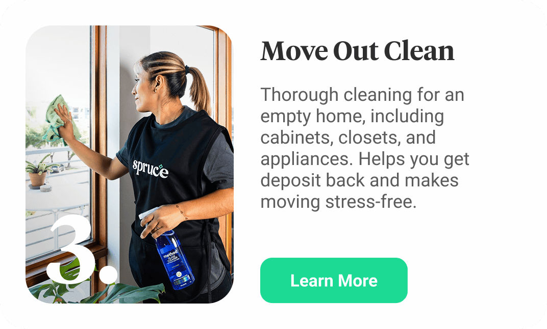 Spruce is your go-to home cleaning service for apartment living. Book a trusted pro in minutes and come home to a space that feels fresh and cared for.