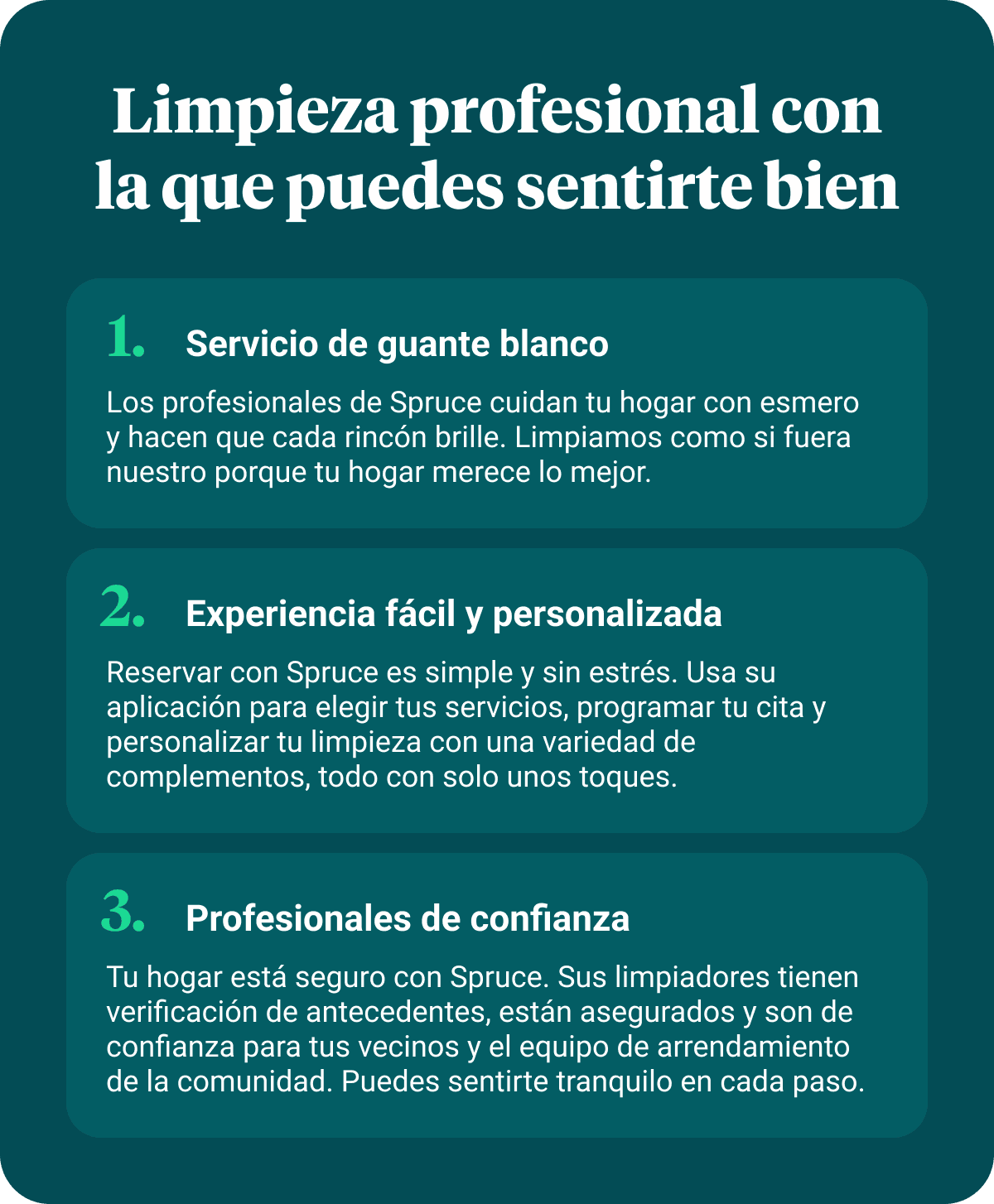 Spruce ofrece servicios de Limpieza y Tareas p ara mantener tu hogar impecable sin esfuerzo. |